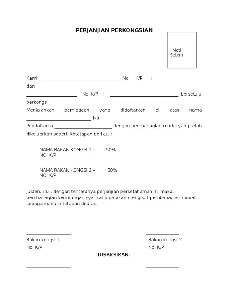 Contoh Surat Perjanjian Perkongsian Cidb - Surat Perjanjian Perkongsian Perniagaan Doc Surat Perjanjian Bagi Perkongsian Perniagaan Perjanjian Ini Diperbuat Pada Hari Bulan Tahun 20 Course Hero. Dewan bandaraya kuala lumpur menara dbkl 1, jalan raja laut 50350 kuala lumpur, malaysia. 1 salinan lengkap ssm 6.